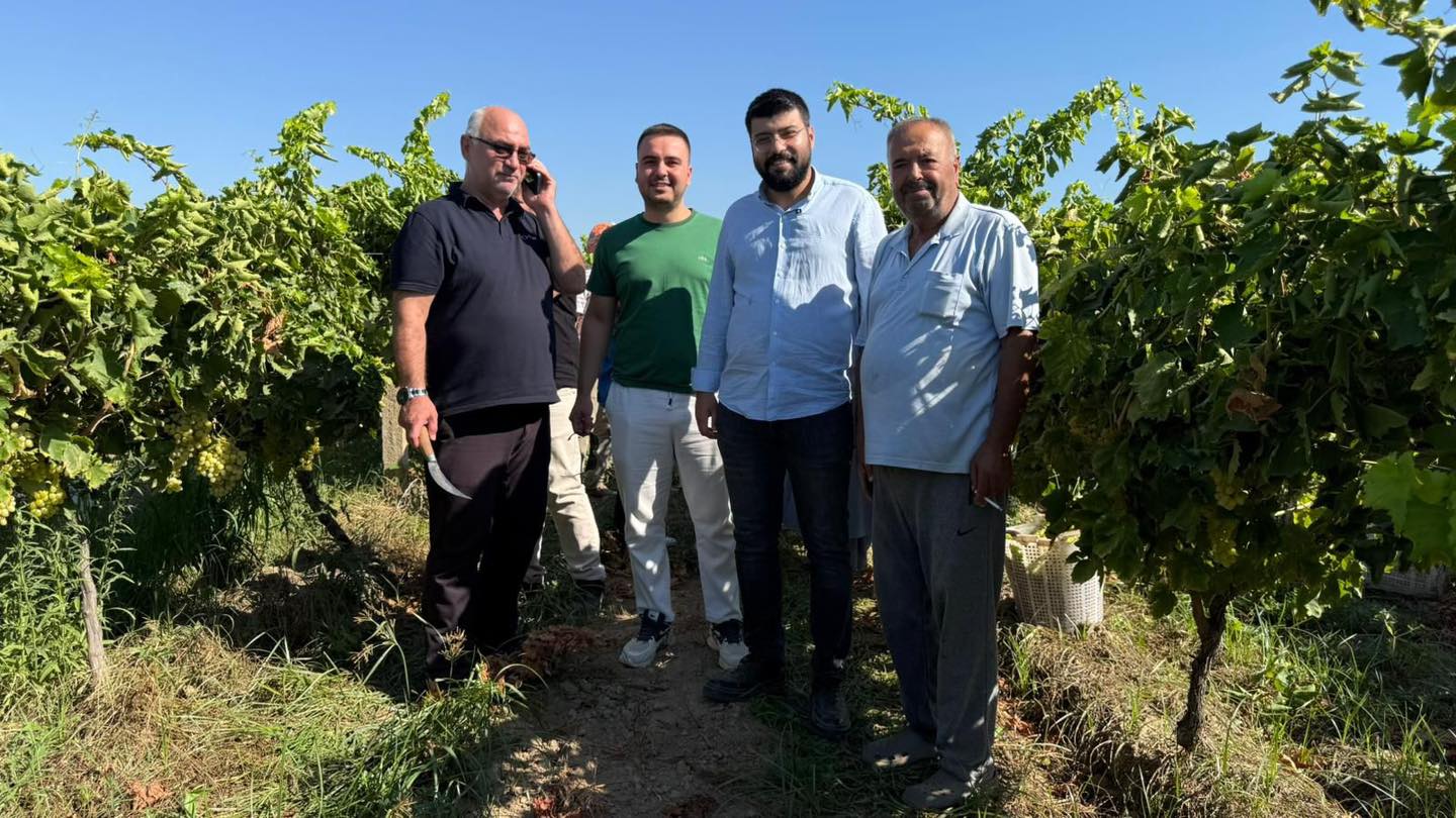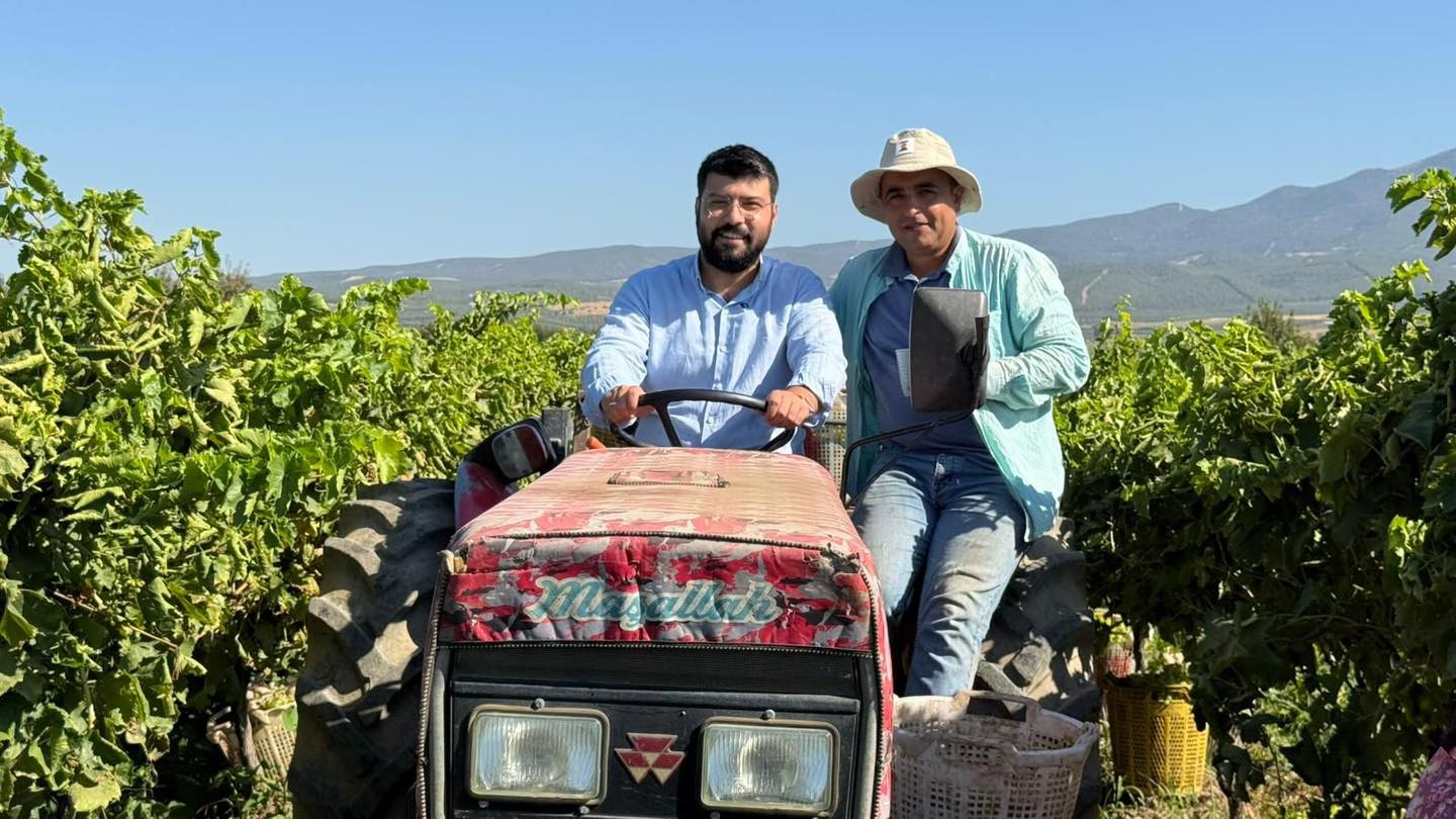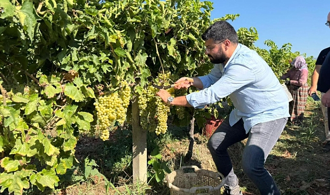 Manisa’nın Turgutlu ilçesinde üzüm hasadı tüm hızıyla devam ediyor. Ak Parti Turgutlu İlçe Başkanı Ömercan Temizel, Turgutlu ovasında çiftçilerle birlikte üzüm hasadına katıldı. Başkan Temizel, üzüm keserek üreticilerle sohbet etti ve işçilere kolaylıklar diledi.