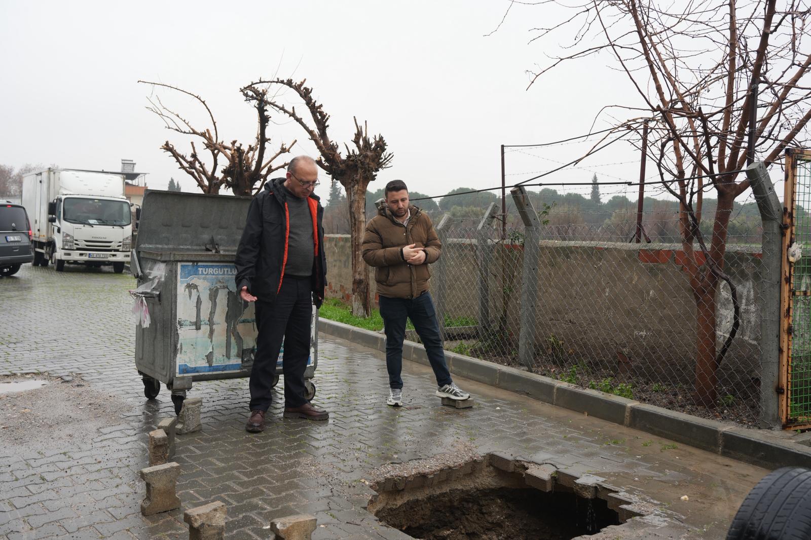 Turgutlu Belediye Başkanı Çetin Akın, kenti etkisi altına alan sağanak yağış sebebiyle olumsuzlukların yaşandığı noktalarda incelemelerde bulundu. Başkan Çetin Akın, sorunların çözülmesi adına gerekli çalışmaların en kısa sürede gerçekleştirileceğini söyledi.Turgutlu Belediye Başkanı Çetin Akın, yeni haftanın ilk gününde saha incelemelerini gerçekleştirdi. Kentte günlerdir etkili olan yoğun yağışın ardından çeşitli olumsuz durumların yaşandığı noktalara giderek incelemelerde bulundu. Başkan Çetin Akın bu doğrultuda Erbiller Sanayi Sitesi, İstasyonaltı Mahalle Muhtarlığı yanı ile Yaylalıkapı ve Yaprak Sokakta meydana gelen hasarları Fen İşleri Müdürü Cihan Çakto ile birlikte yerinde tespit etti.Konuyla ilgili açıklamada bulunan Başkan Çetin Akın “Turgutlu’muzu etkisi altına alan sağanak yağışın neden olduğu olumsuzlukların yaşandığı bölgelerde incelemelerimizi gerçekleştirdik. Söz konusu noktalarda sorunları çözmek ve olumsuz durumları ortadan kaldırabilmek adına gerekli çalışmaları Manisa Büyükşehir Belediyesi ekiplerimizle birlikte en kısa sürede gerçekleştireceğiz” dedi.